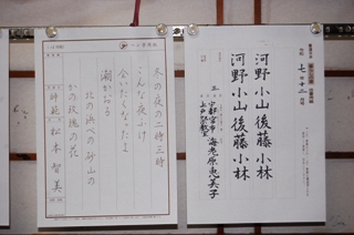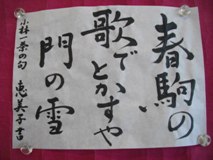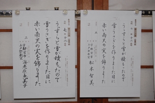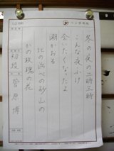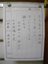 寒い日々が続きます。 風邪をひかないように気をつけましょう。 昨年の後期試験で『暮らしの書』部門で 3名が教授に認定されました。 おめでとうございます。(*^_^*) それぞれ挑戦された方、皆さん段、級アップされました。 お疲れ様でした。(^○^)。 日々の行動の提案として ・ 起きる時、仰向け姿勢で、足をあげ、ブラブラすると下半身の力みがとれ、血流が促進されます。 ・ 歩くとき、重心をまっすぐに引き上げ、バランスよく動かすと、代謝を促されます。 ・ 座るとき、骨盤をゆらして、モゾモゾと動かす 。 ・ 立ち上がる時、椅子に浅く座り、足を肩幅より少し広めに開き、股関節から動かして、立ち上がると、下半身強化できるらしい。 私はスクワット10回を思い出したとき、するように心がけています。