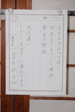 (^-^)♪ どの作品も すばらしい !(^^)! 真剣な気持ちに感謝です。 う・れ・し・い !(^_^)vvv ゆっくり 楽しく チャレンジしていきましょう! 子どもも、大人も、みんな美文字に挑戦です。気持ちは同じですね♪